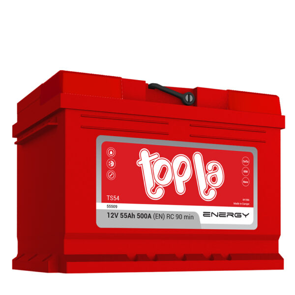 Тopla energy акумулаторите се произведени во водечка Ca/Ca со технологија на експaндиран метал. Topla energy е многу функционален акумулатор кој нуди одлична моќ, високи стартни струи при ладен старт на моторот и голема сигурност при неговата експлоатација. Ова е високо квалитетен производ прилагоден за возила од секоја класа, по димензии и капацитет, а се одликува со долг животен век и многу ниска потрошувачка на вода.
